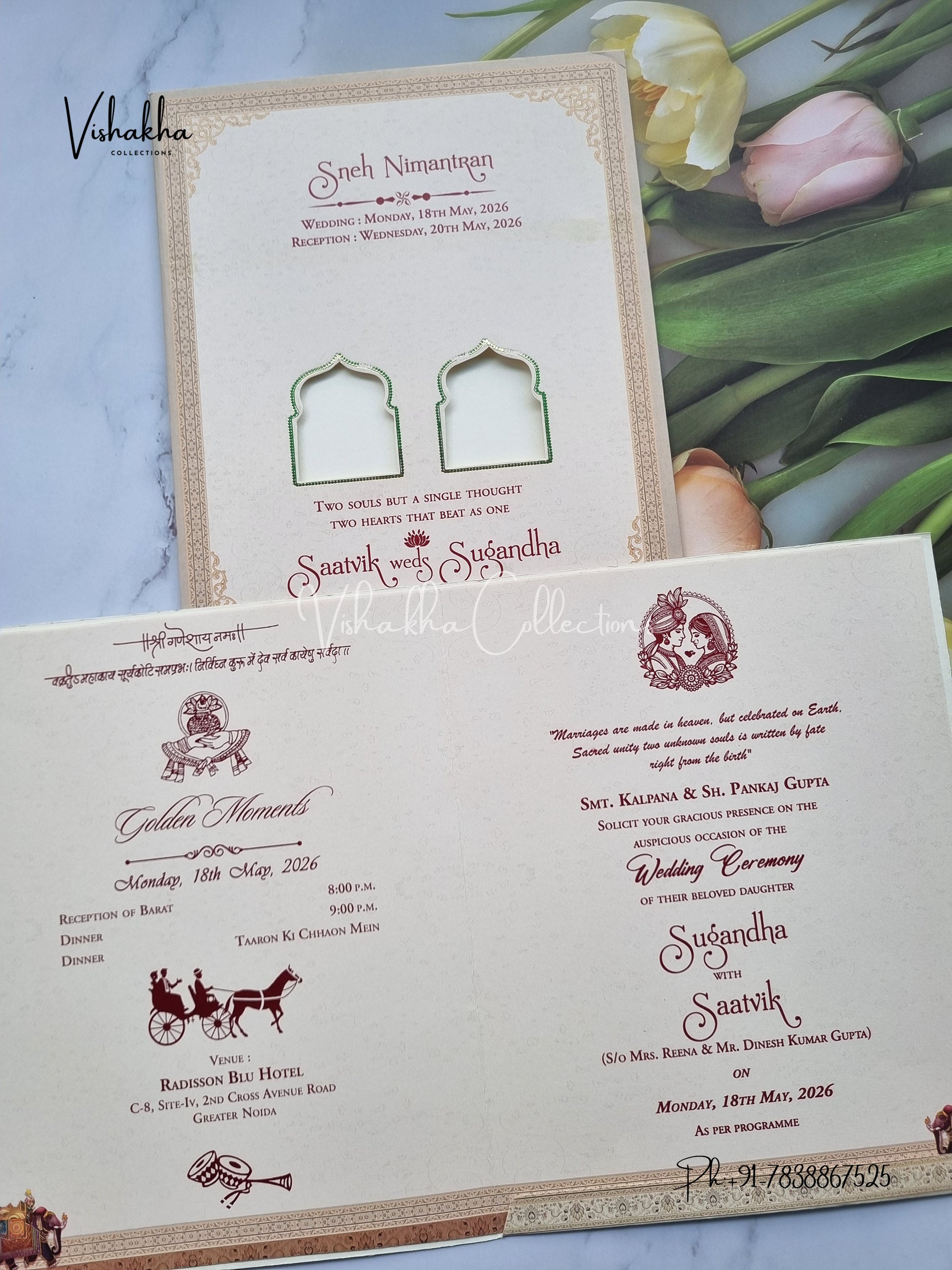 Vishakha Collections presents you beautiful luxury wedding invitation cards with all latest designs and the latest variety. Its just not a wedding invitation card but a beautiful feeling of love and relationship it carries for you. Beautifully printed and packed with a bundle of love. if you like it, dont think again, just go for it.If you are worrying about the quality of the product, send your doubts to us. We are here to help you. If you want in wholesale or bulk, dont forget to contact us.