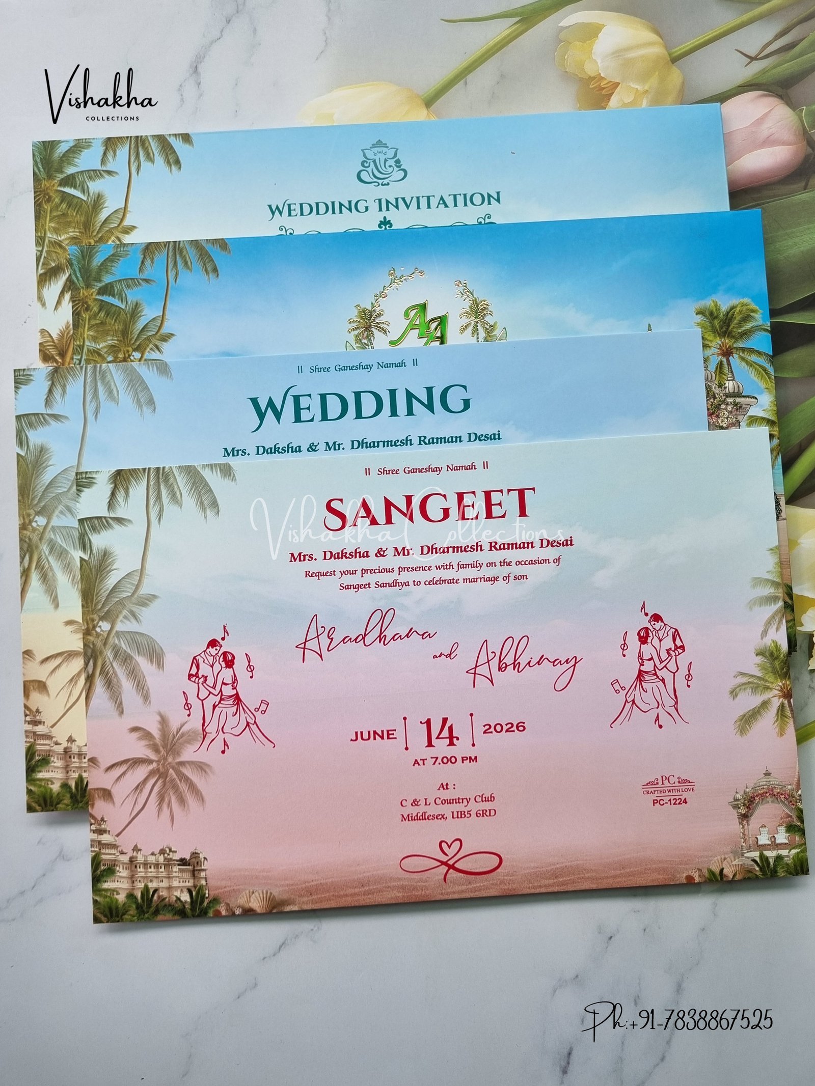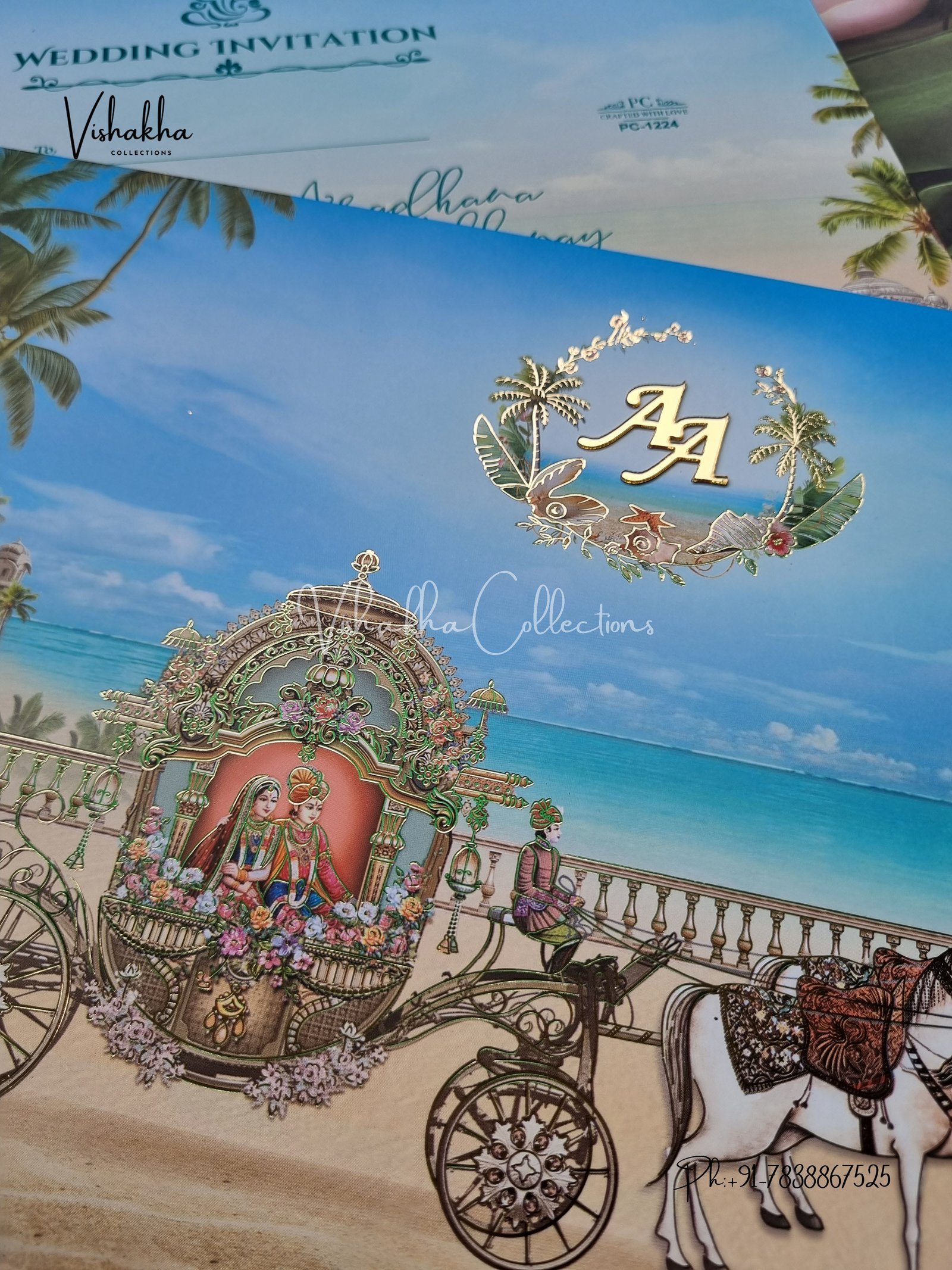Vishakha Collections presents you beautiful luxury wedding invitation cards with all latest designs and the latest variety. Its just not a wedding invitation card but a beautiful feeling of love and relationship it carries for you. Beautifully printed and packed with a bundle of love. if you like it, dont think again, just go for it.If you are worrying about the quality of the product, send your doubts to us. We are here to help you. If you want in wholesale or bulk, dont forget to contact us.