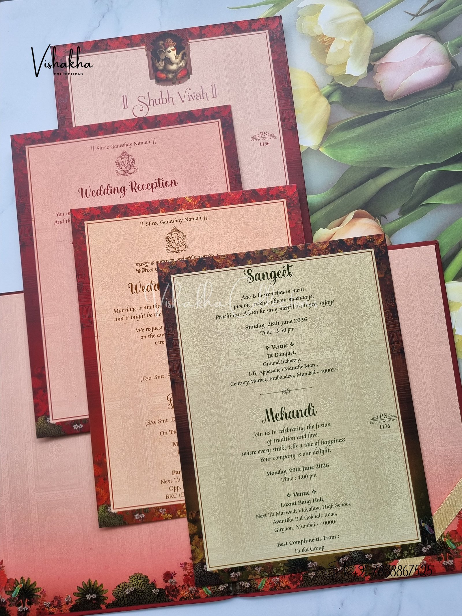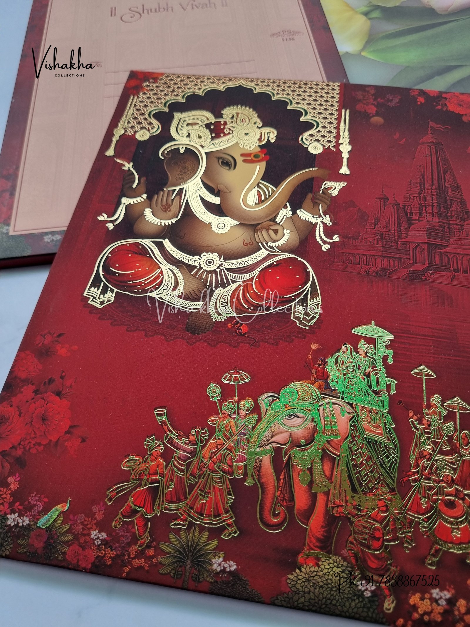Barat Ganesh Ji Hindu Sikh Padded invitation Cards PN-1136