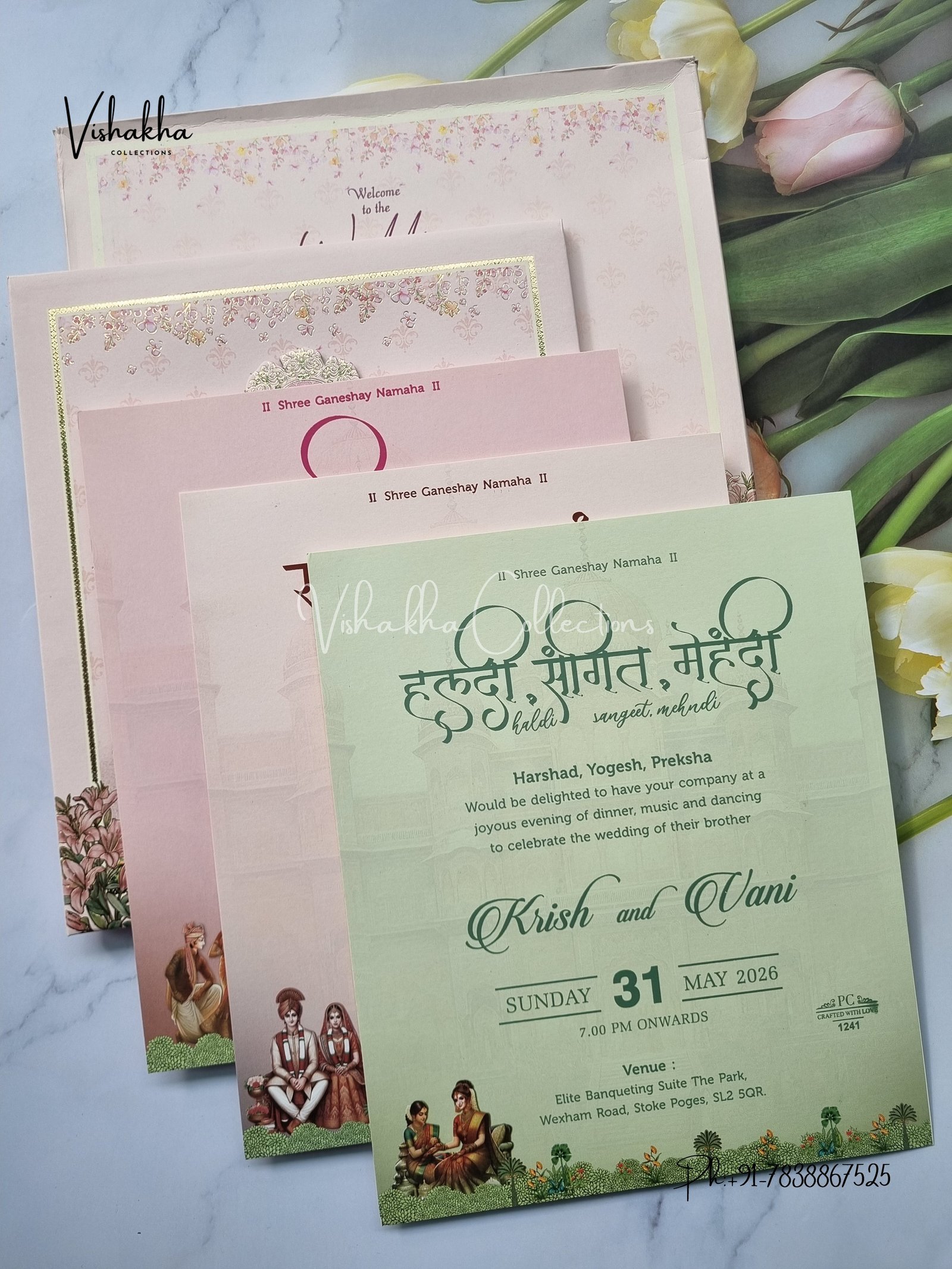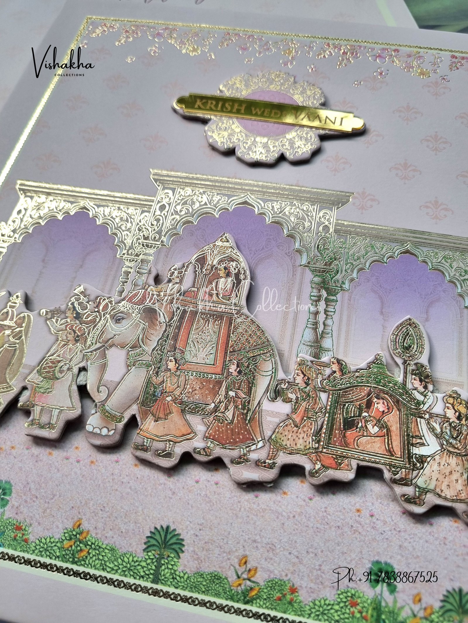 Vishakha Collections presents you beautiful luxury wedding invitation cards with all latest designs and the latest variety. Its just not a wedding invitation card but a beautiful feeling of love and relationship it carries for you. Beautifully printed and packed with a bundle of love. if you like it, dont think again, just go for it.If you are worrying about the quality of the product, send your doubts to us. We are here to help you. If you want in wholesale or bulk, dont forget to contact us.