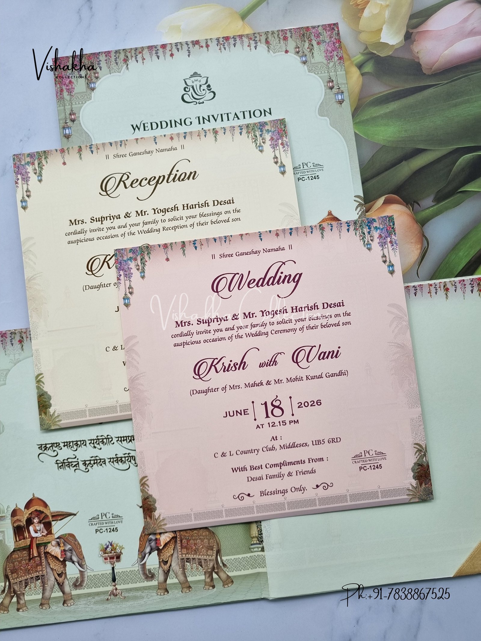 Barat Hathi Hindu Sikh Padded invitation Cards PN-1245