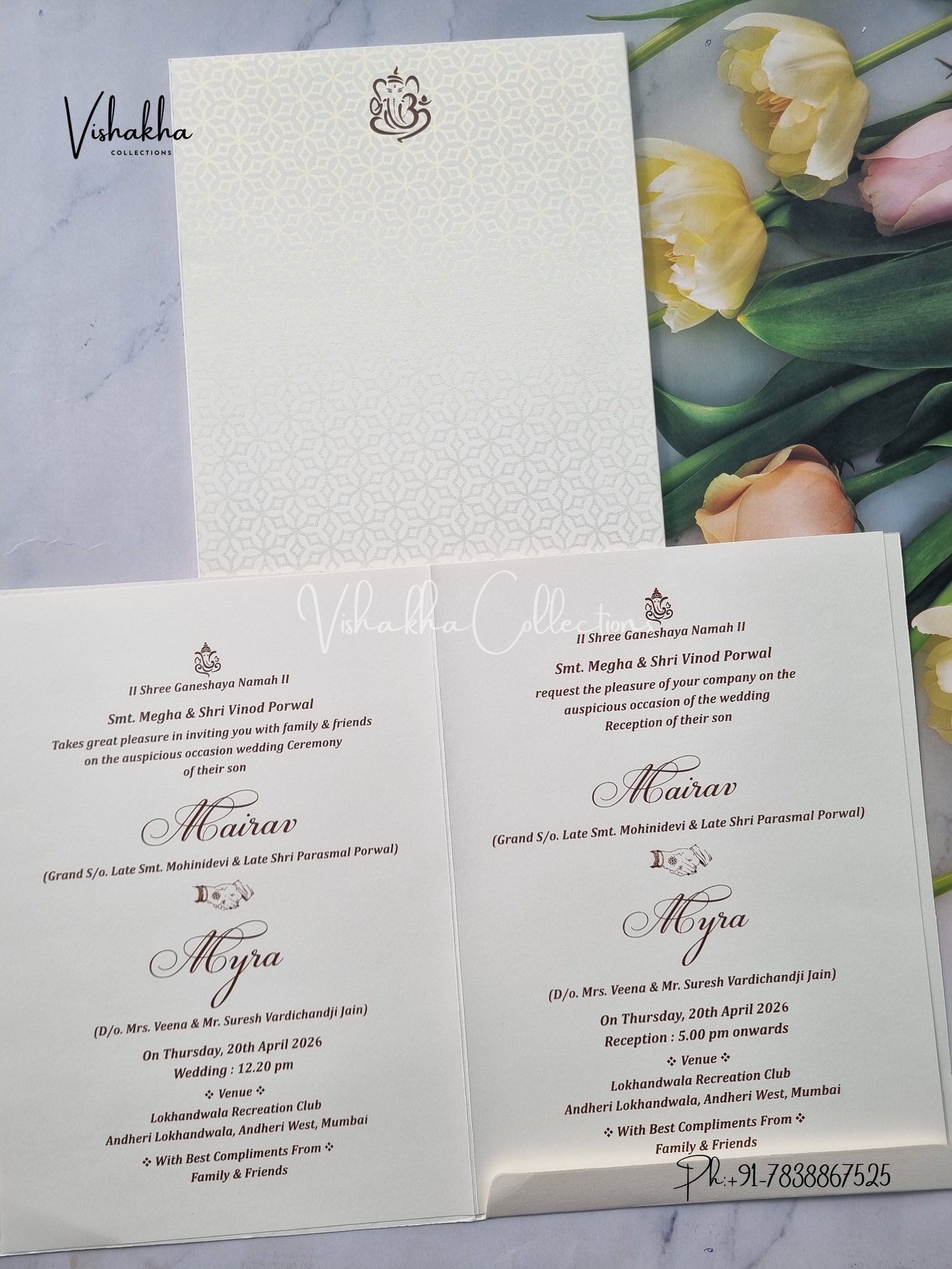 Semi Box Ganesh Ji Hindu white Colored invitation Cards SK-3318