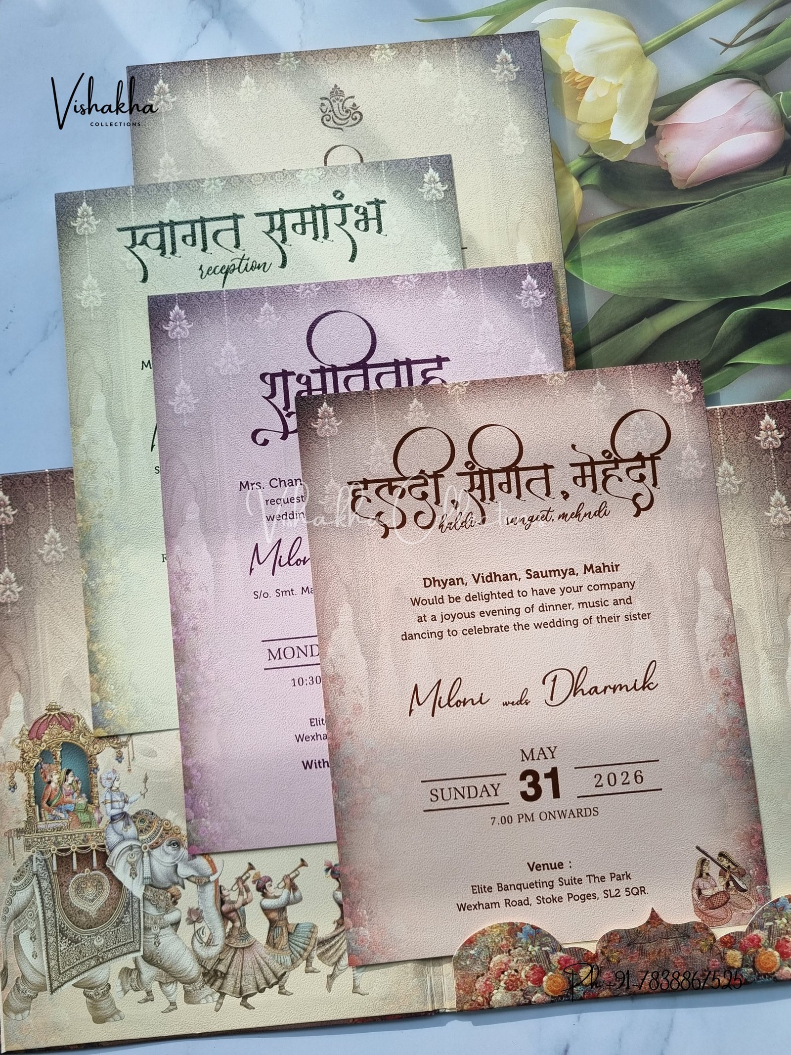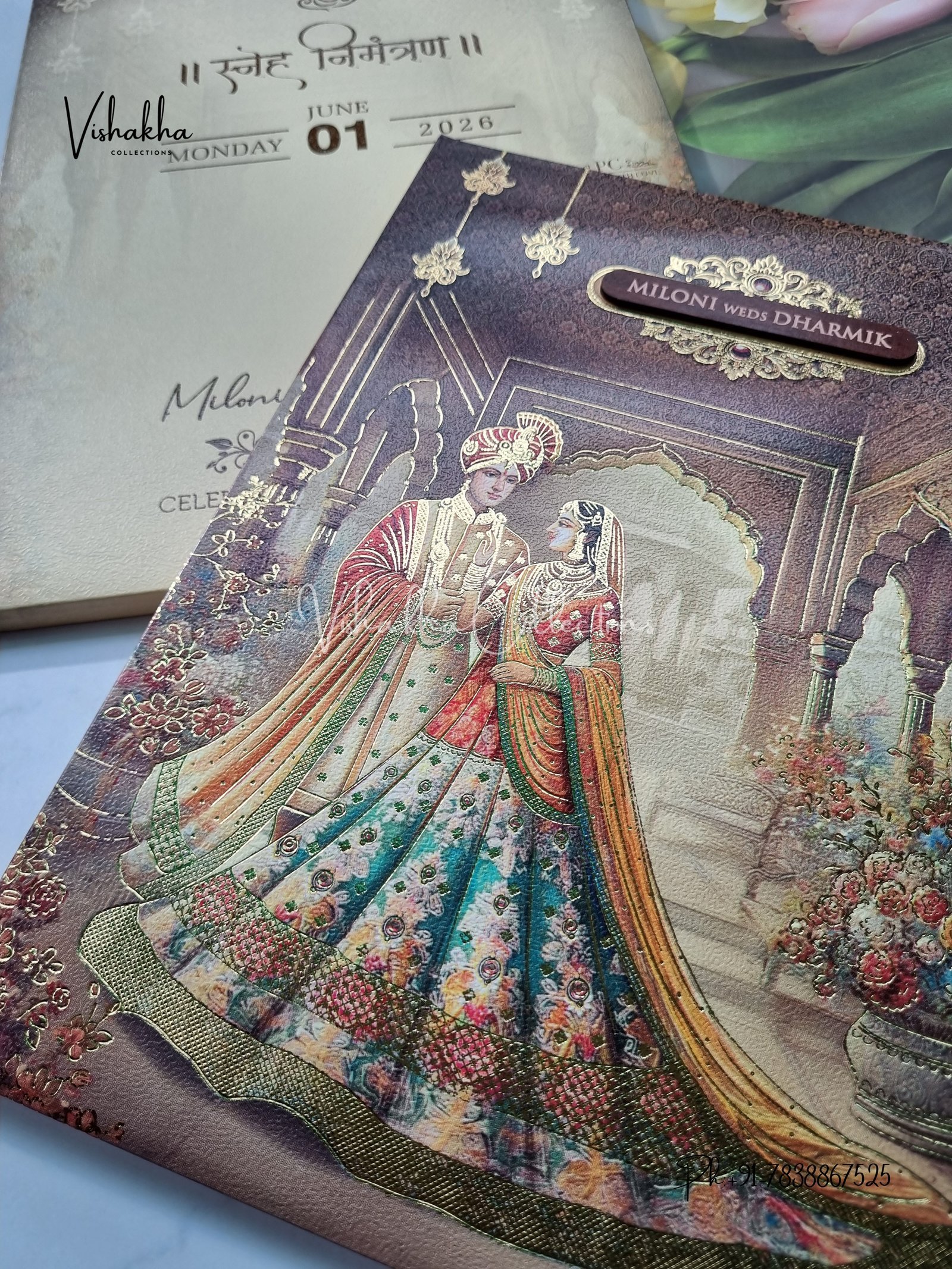Vishakha Collections presents you beautiful luxury wedding invitation cards with all latest designs and the latest variety. Its just not a wedding invitation card but a beautiful feeling of love and relationship it carries for you. Beautifully printed and packed with a bundle of love. if you like it, dont think again, just go for it.If you are worrying about the quality of the product, send your doubts to us. We are here to help you. If you want in wholesale or bulk, dont forget to contact us.