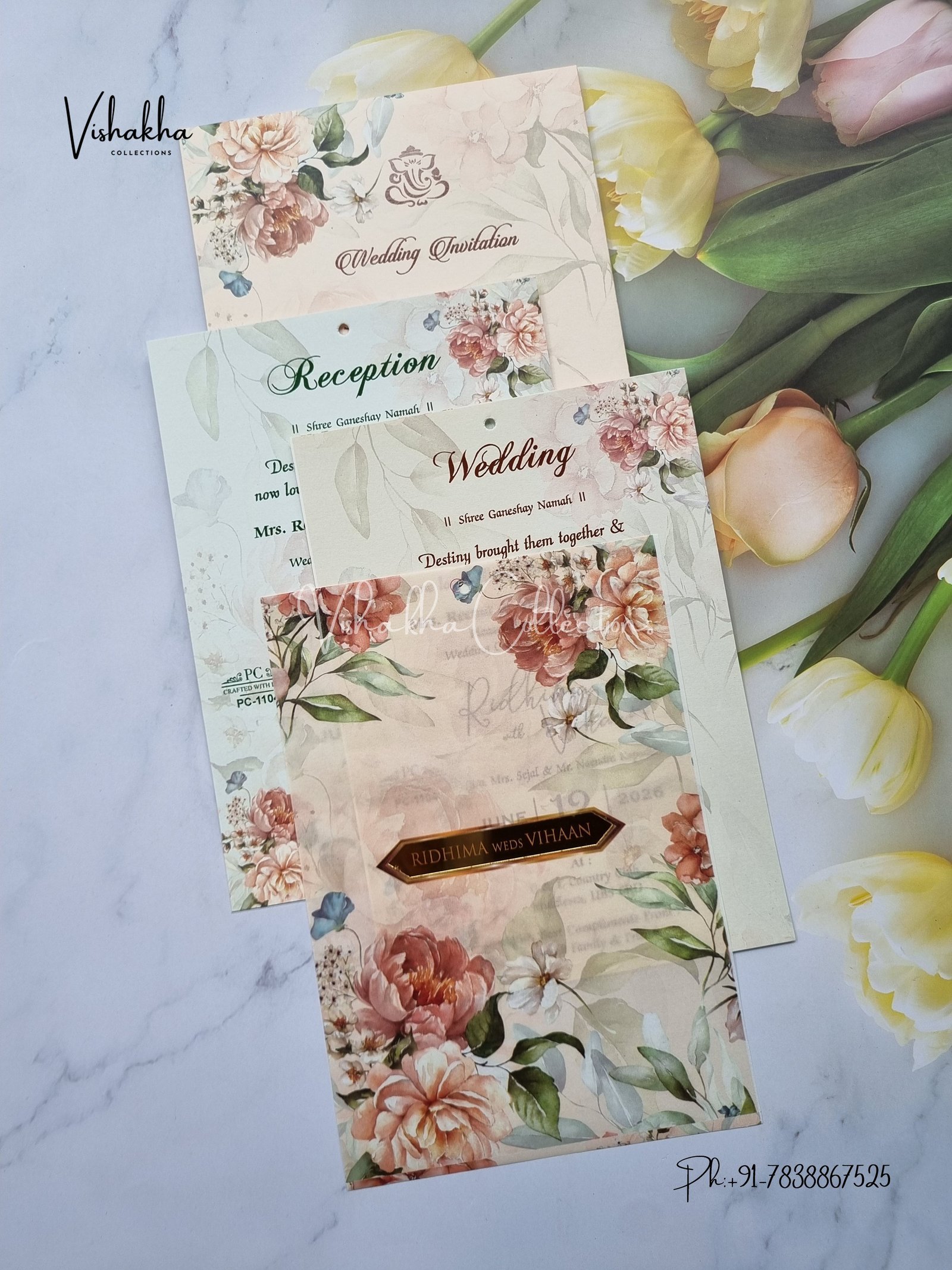 Flower Hindu Muslim Christian Sikh Vellum Paper invitation Cards PN-1104