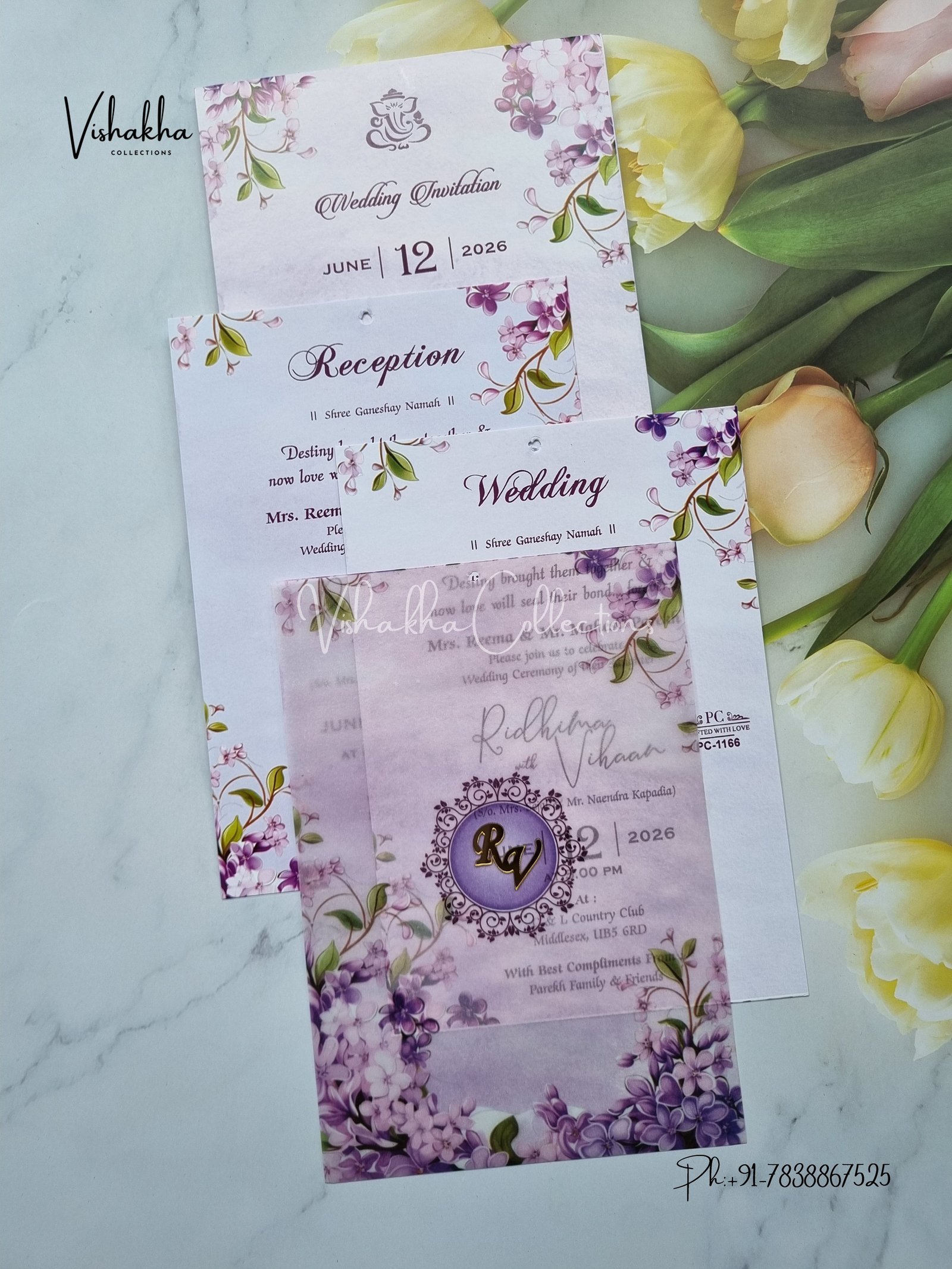 Flower Hindu Muslim Christian Sikh Vellum Paper invitation Cards PN-1166