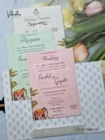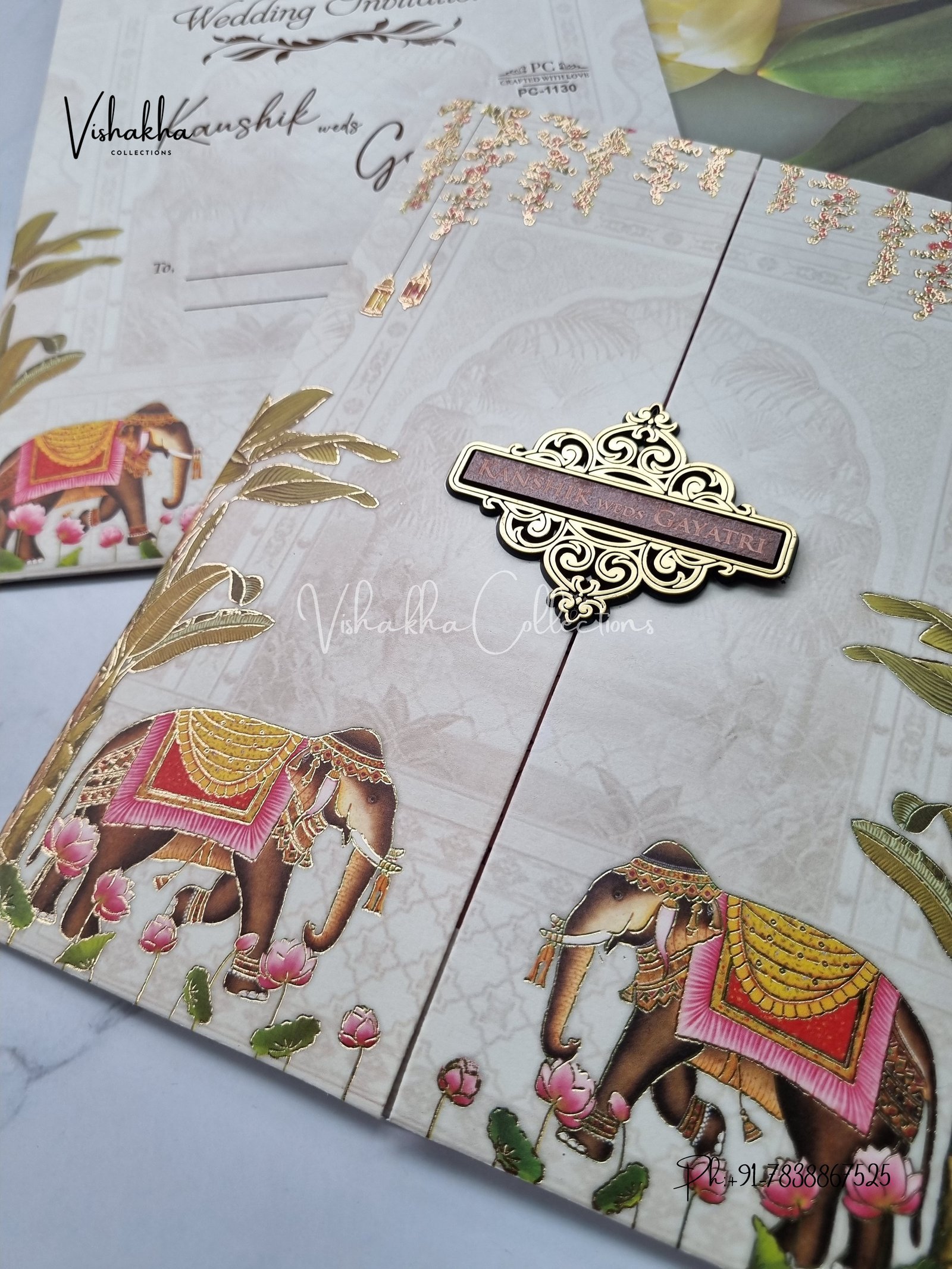 Vishakha Collections presents you beautiful luxury wedding invitation cards with all latest designs and the latest variety. Its just not a wedding invitation card but a beautiful feeling of love and relationship it carries for you. Beautifully printed and packed with a bundle of love. if you like it, dont think again, just go for it.If you are worrying about the quality of the product, send your doubts to us. We are here to help you. If you want in wholesale or bulk, dont forget to contact us.