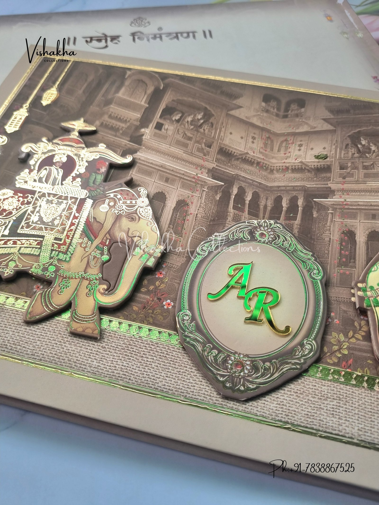 Hathi Dulah Dulhan Hindu Sikh Padded invitation Cards PN-1145
