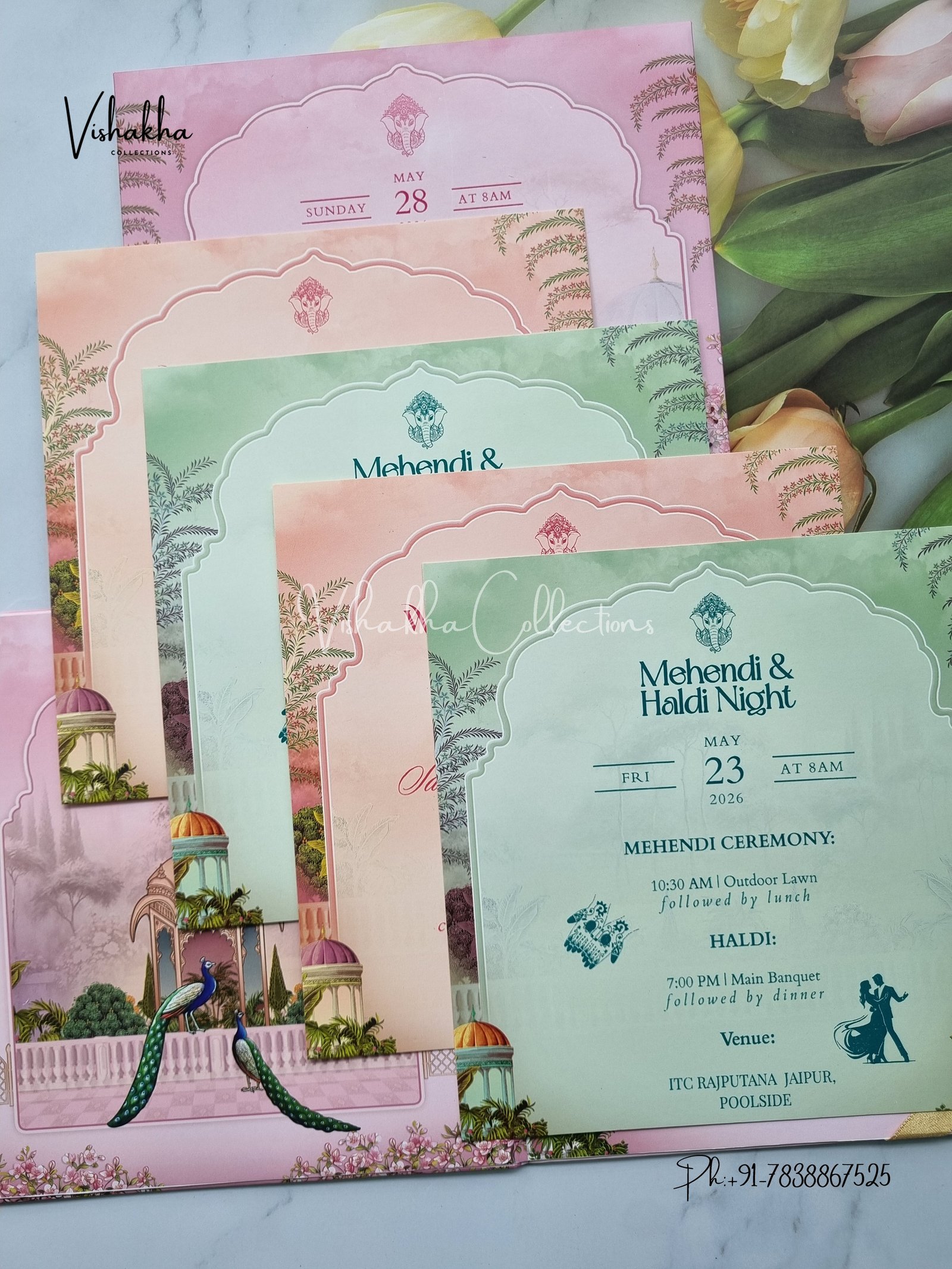 Vishakha Collections presents you beautiful luxury wedding invitation cards with all latest designs and the latest variety. Its just not a wedding invitation card but a beautiful feeling of love and relationship it carries for you. Beautifully printed and packed with a bundle of love. if you like it, dont think again, just go for it.If you are worrying about the quality of the product, send your doubts to us. We are here to help you. If you want in wholesale or bulk, dont forget to contact us.