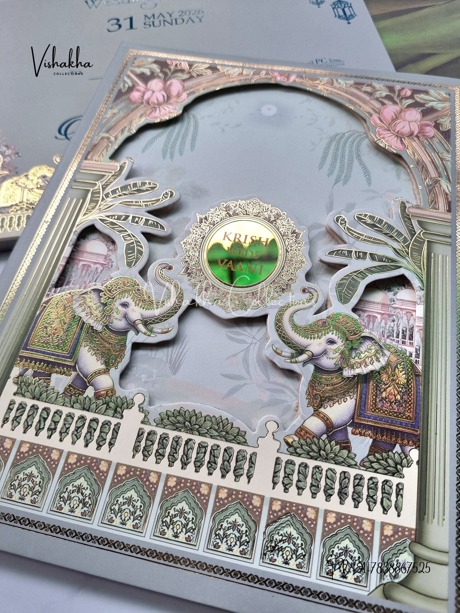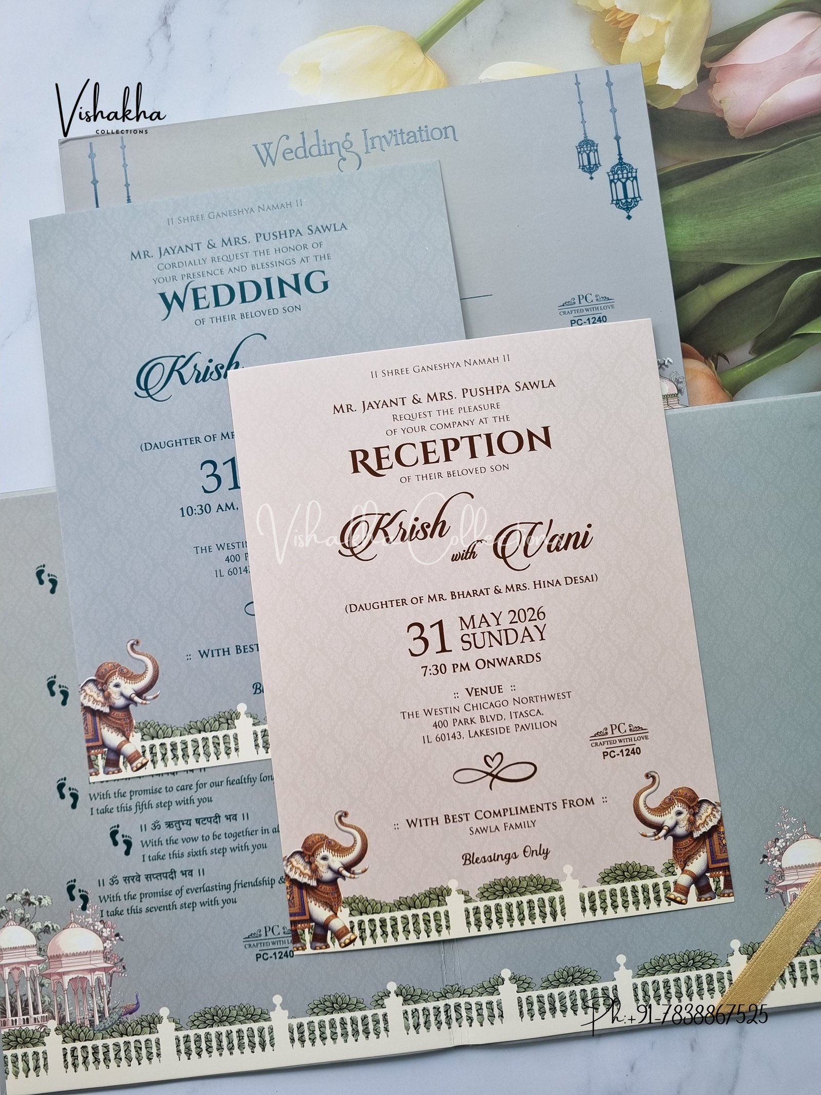 Hathi Hindu Sikh Padded invitation Cards PN-1240