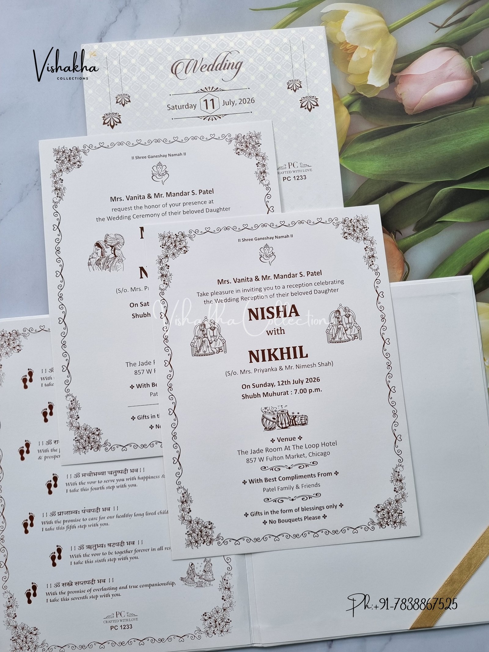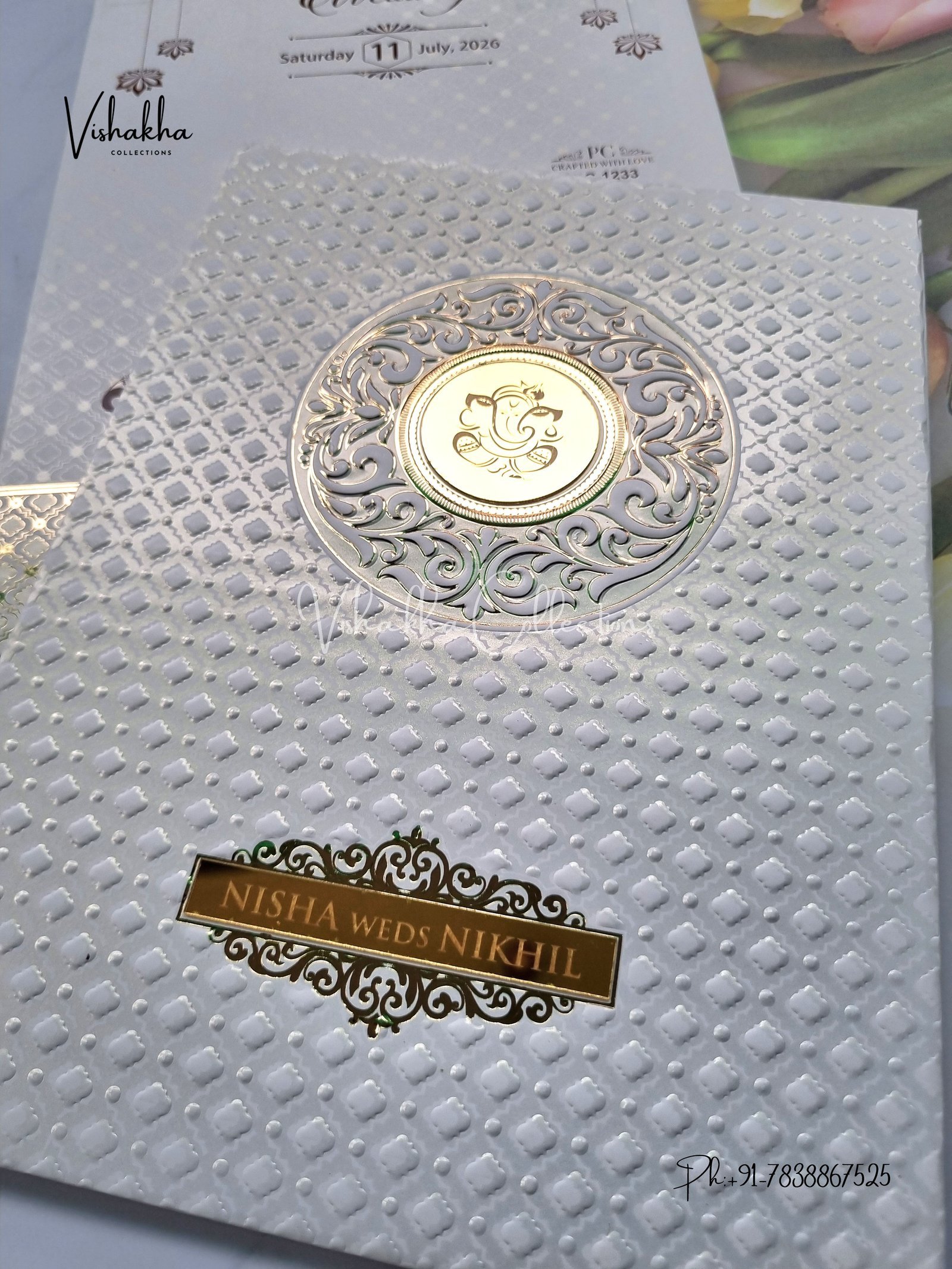 Vishakha Collections presents you beautiful luxury wedding invitation cards with all latest designs and the latest variety. Its just not a wedding invitation card but a beautiful feeling of love and relationship it carries for you. Beautifully printed and packed with a bundle of love. if you like it, dont think again, just go for it.If you are worrying about the quality of the product, send your doubts to us. We are here to help you. If you want in wholesale or bulk, dont forget to contact us.
