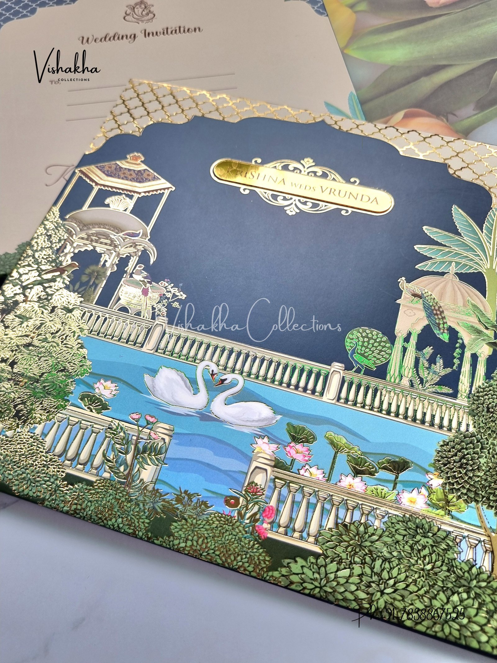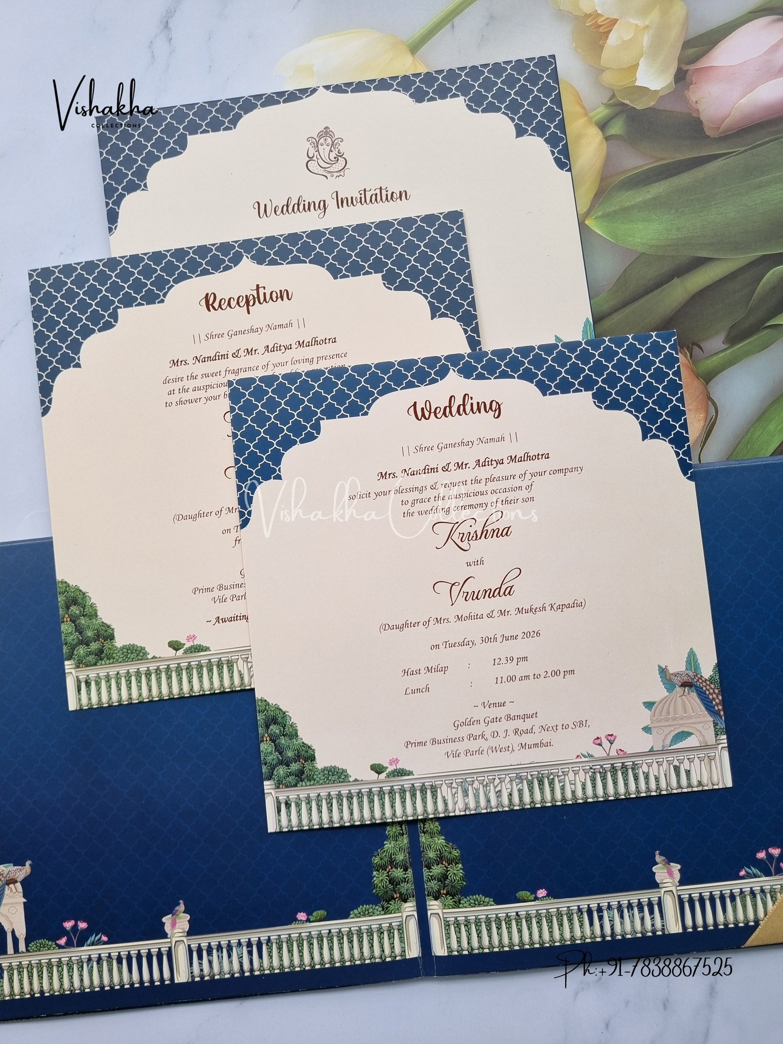 Vishakha Collections presents you beautiful luxury wedding invitation cards with all latest designs and the latest variety. Its just not a wedding invitation card but a beautiful feeling of love and relationship it carries for you. Beautifully printed and packed with a bundle of love. if you like it, dont think again, just go for it.If you are worrying about the quality of the product, send your doubts to us. We are here to help you. If you want in wholesale or bulk, dont forget to contact us.