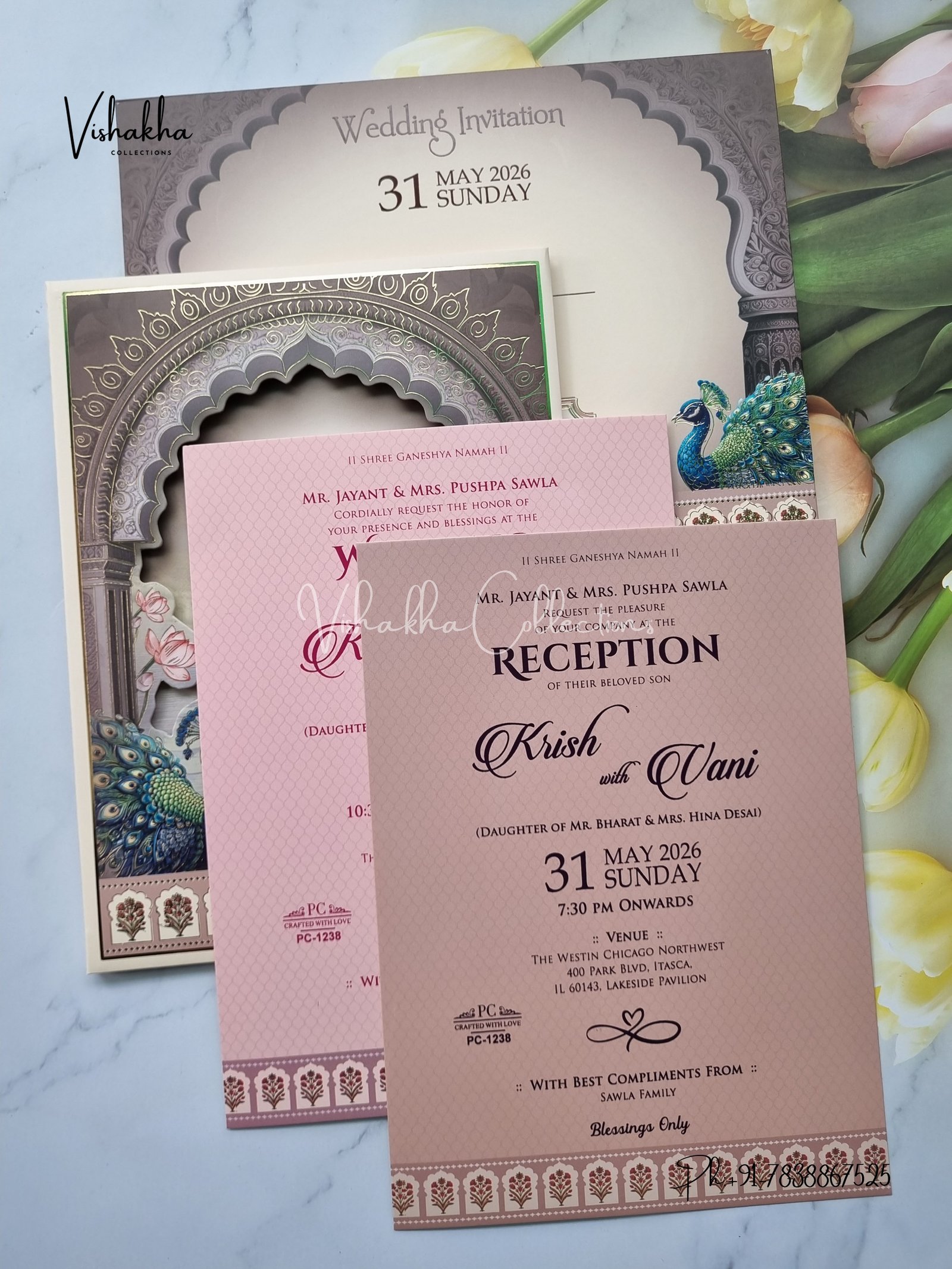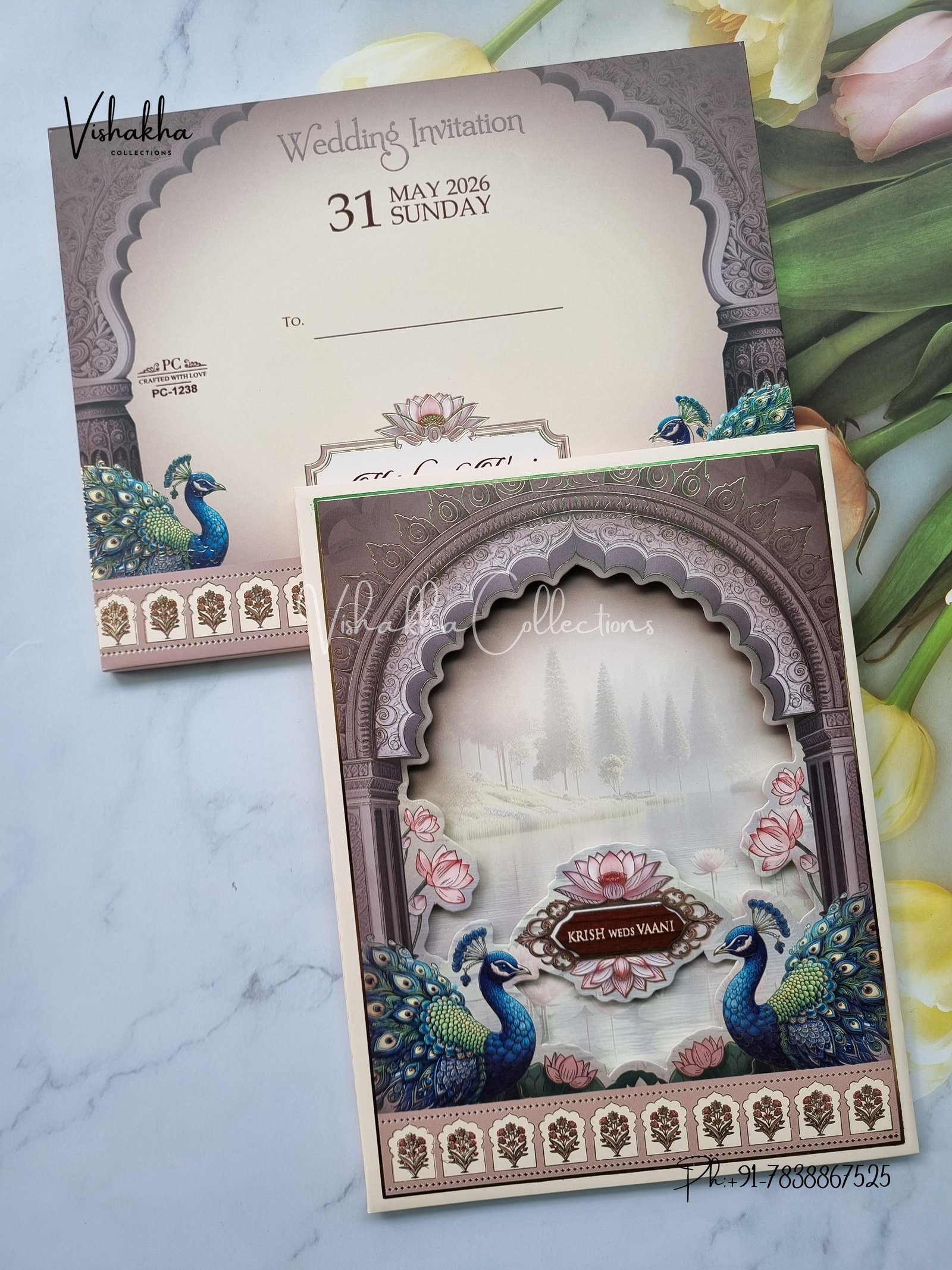 Lotus Peacock Hindu Muslim Christian Sikh Padded invitation Cards PN-1238