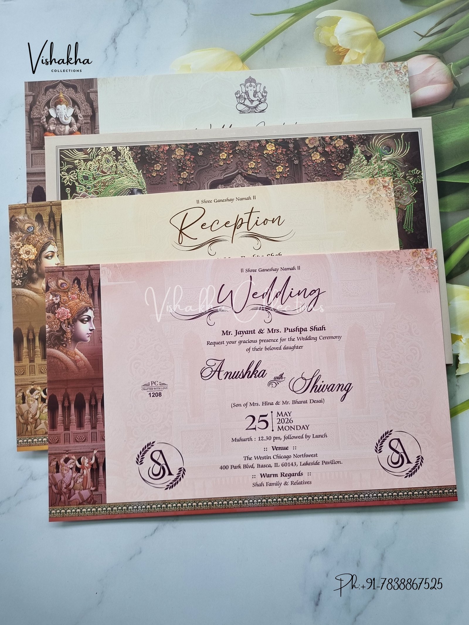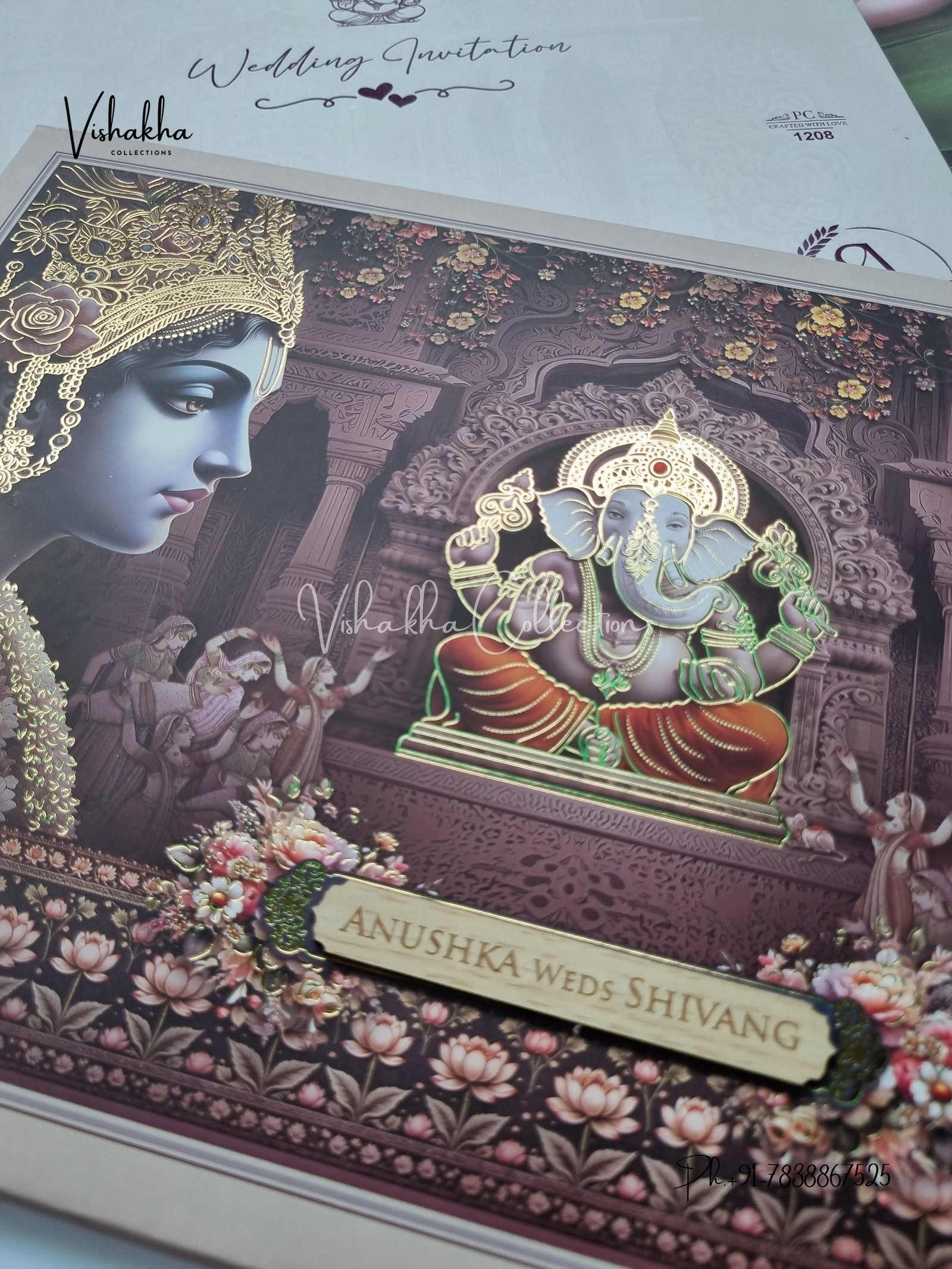 Radha Krishna Ganesh Ji Hindu Padded invitation Cards PN-1208