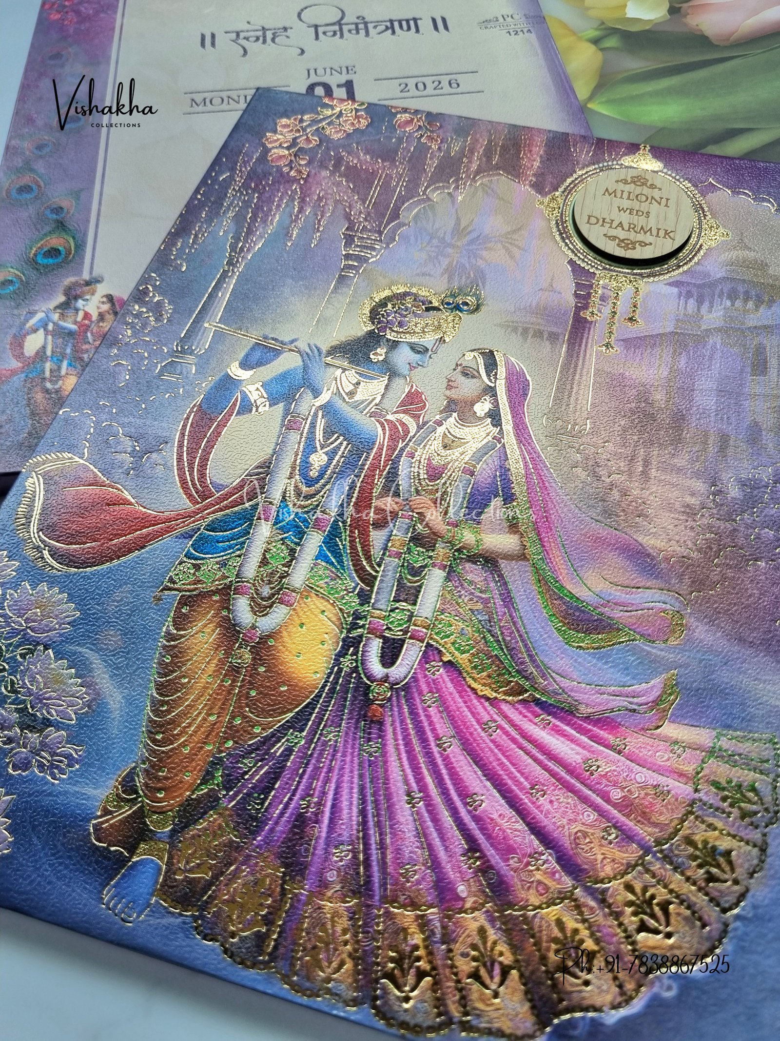 Radha Krishna Hindu Padded invitation Cards PN-1214